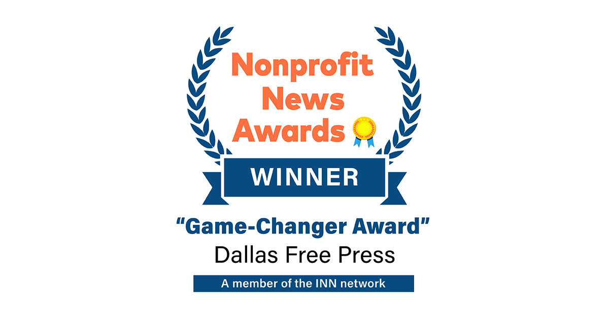 “I think Dallas Free Press is such a stellar example of how many other local journalism entrepreneurs throughout the country could (and should) start small, while maximizing impact and being truly rooted in community and public service,” the judges said of our newsroom. “I especially commend their sharp focus on certain neighborhoods and starting from a place of community listening, meeting real information needs, and centering equity.”